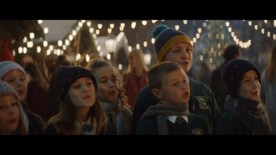 The musical backdrop is provided by the award-winning choir from Ysgol Gynradd Llwyncelyn primary school in Wales singing a special arrangement of Fleetwood Mac’s Albatross, following coaching from Justin and Dan Hawkins from The Darkness.