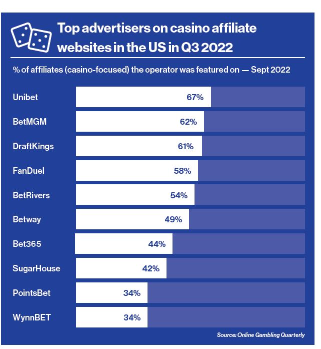 The top gambling advertisers on affiliate websites in the US
