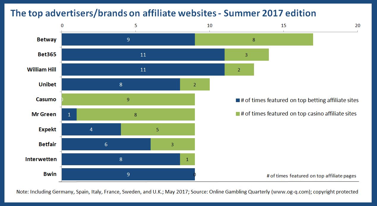 The Online Gambling Quarterly provides an overview of the affiliate activity of key online gambling operators in the betting and casino verticals