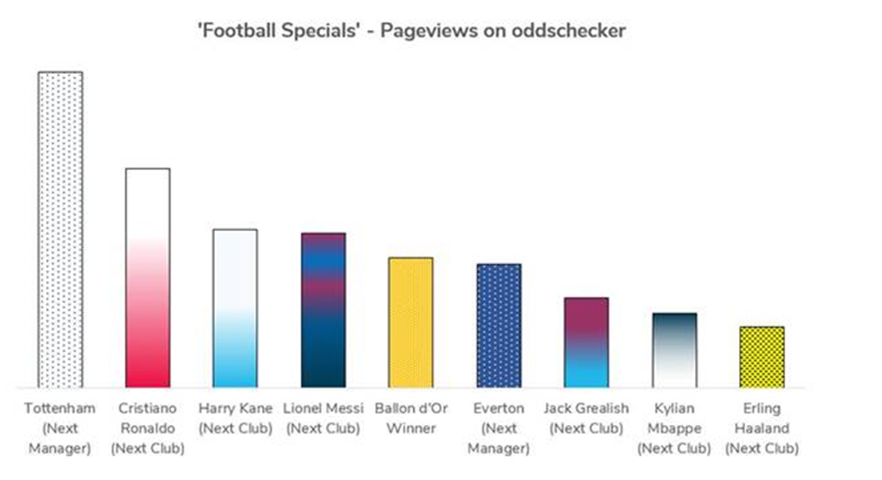 Overall, oddschecker saw a 42.2% increase in overall ‘Football Specials’ pageviews versus the summer transfer window in 2020.
