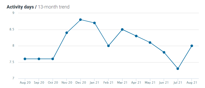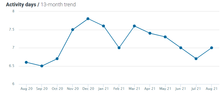 This month, the number of activity days increased by 10% MoM and by 5% YoY, now standing at 8.