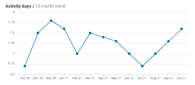 The number of activity days increased by 4% MoM and by 13% YoY, now standing at 7.6.