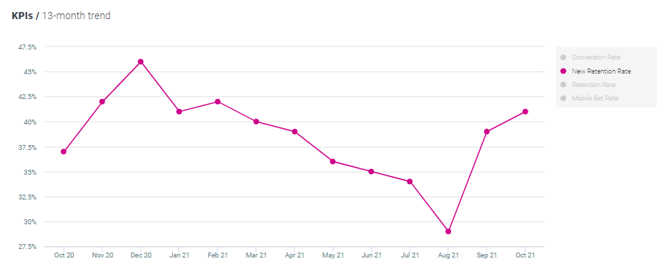 New retention rates increased by 5% MoM and by 11% YoY, now standing at 41%.