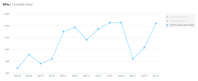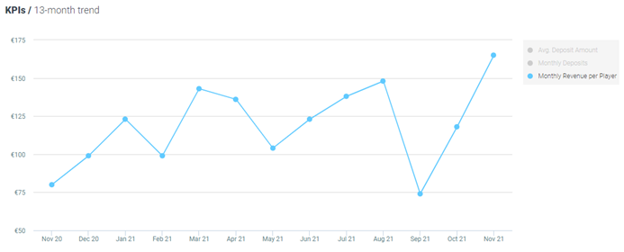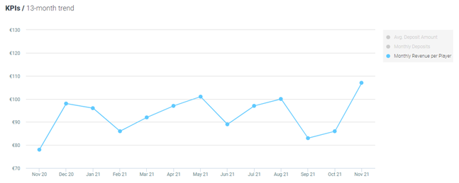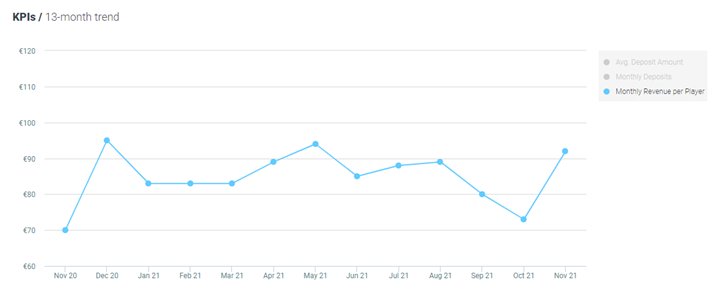 There has been a increased by 26% MoM in average revenue per active player and by 31% YoY, now standing at €92 per player.
