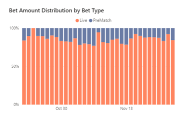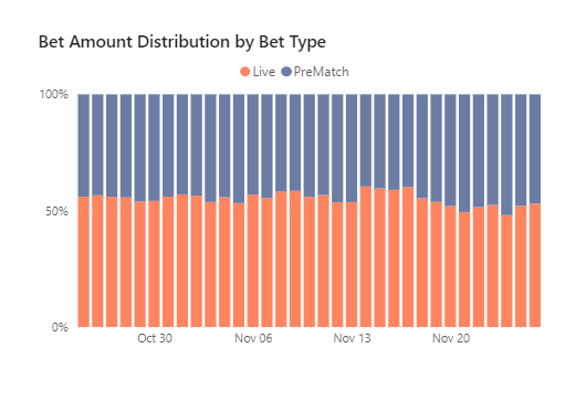 Distribution of the sums deposited shows live betting has a slight edge, with 53%. The average may tilt more in that direction as we approach the even more exciting stages.