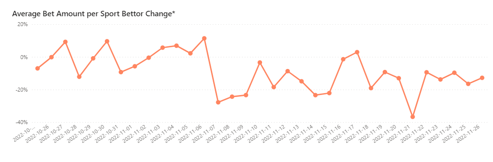 This chart shows that following a drop, which corresponded with the tournament kick off (and actually indicated a wave of new players coming in), the average sum stabilised at around 10% lower than our June 2022 average.