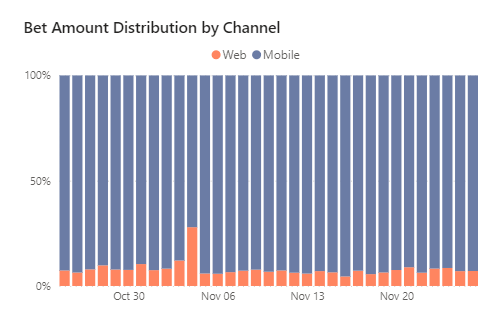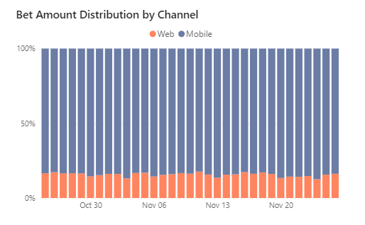 Looking at the global average, 84% of bets come from mobile and that appears steady: