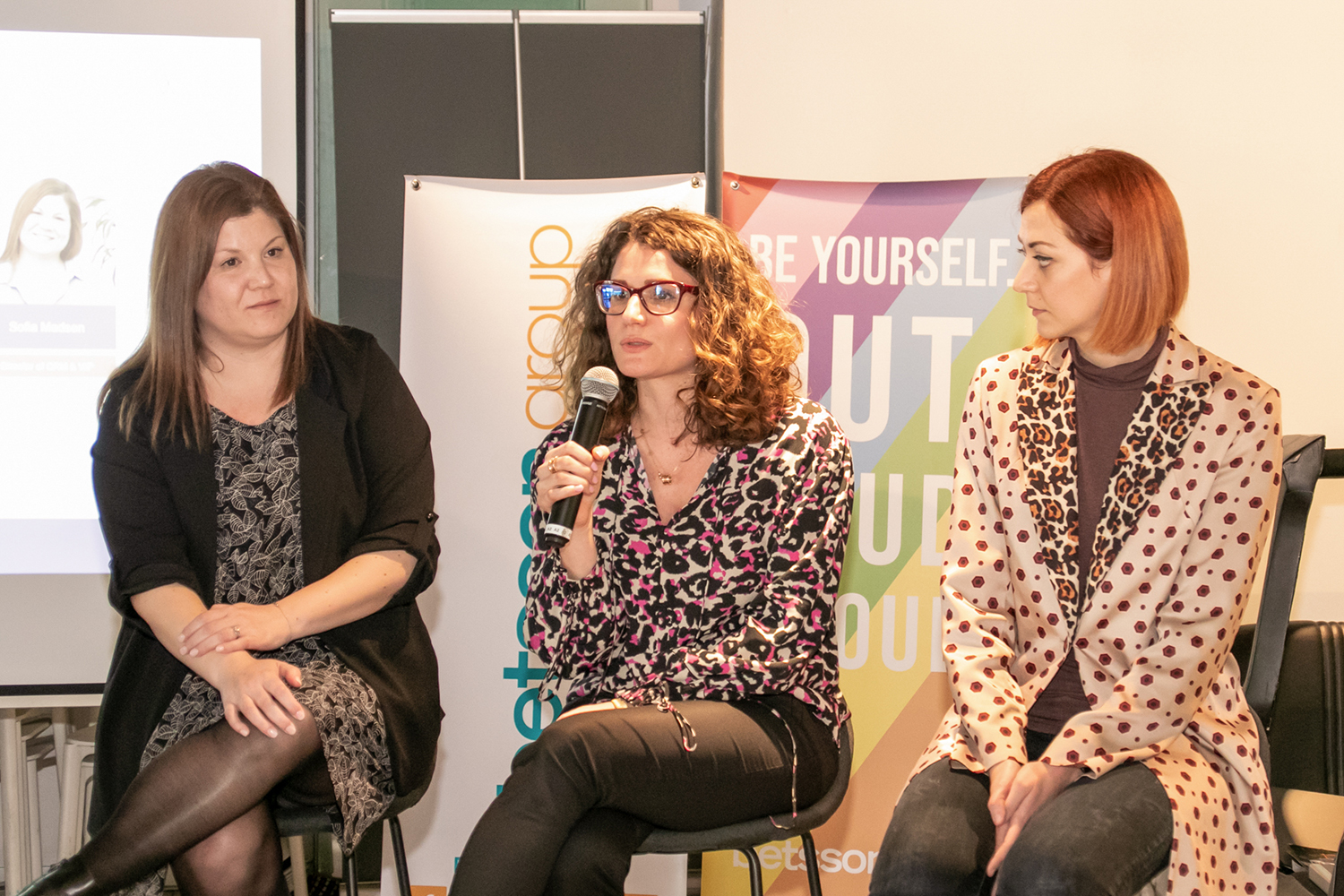Corinne Valletta (centre) during a panel discussion at the first Women in Betsson (WiBE forum)