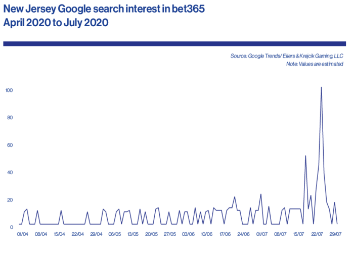 The share increase was accompanied by the recent launch of televised adverts in New Jersey and the debut of signage at Yankee Stadium in New York. We also note that Google search interest in bet365 is trending up in New Jersey.