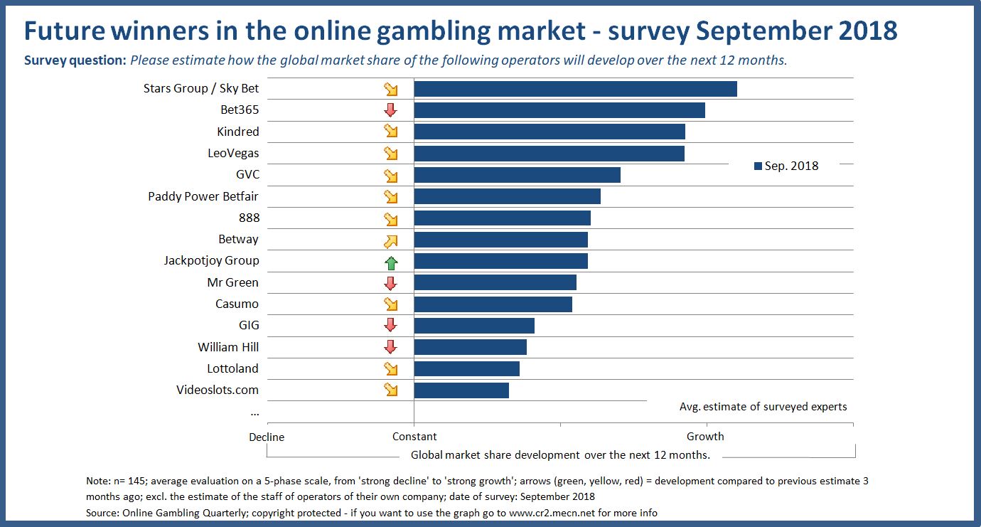 The Stars Group is seen as the operator most likely to increase its market share over the next 12 months, according to new data from the Online Gambling Quarterly.