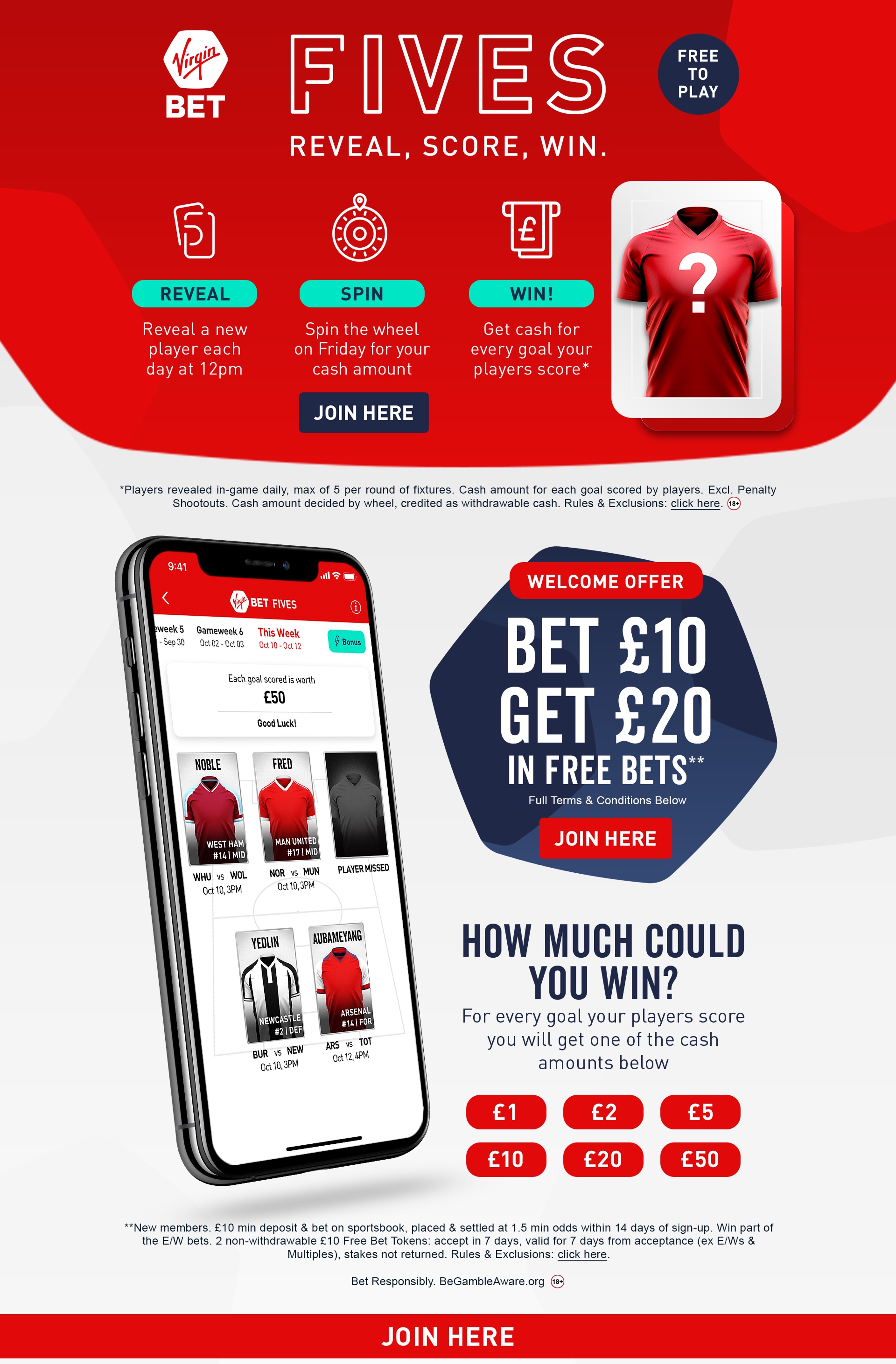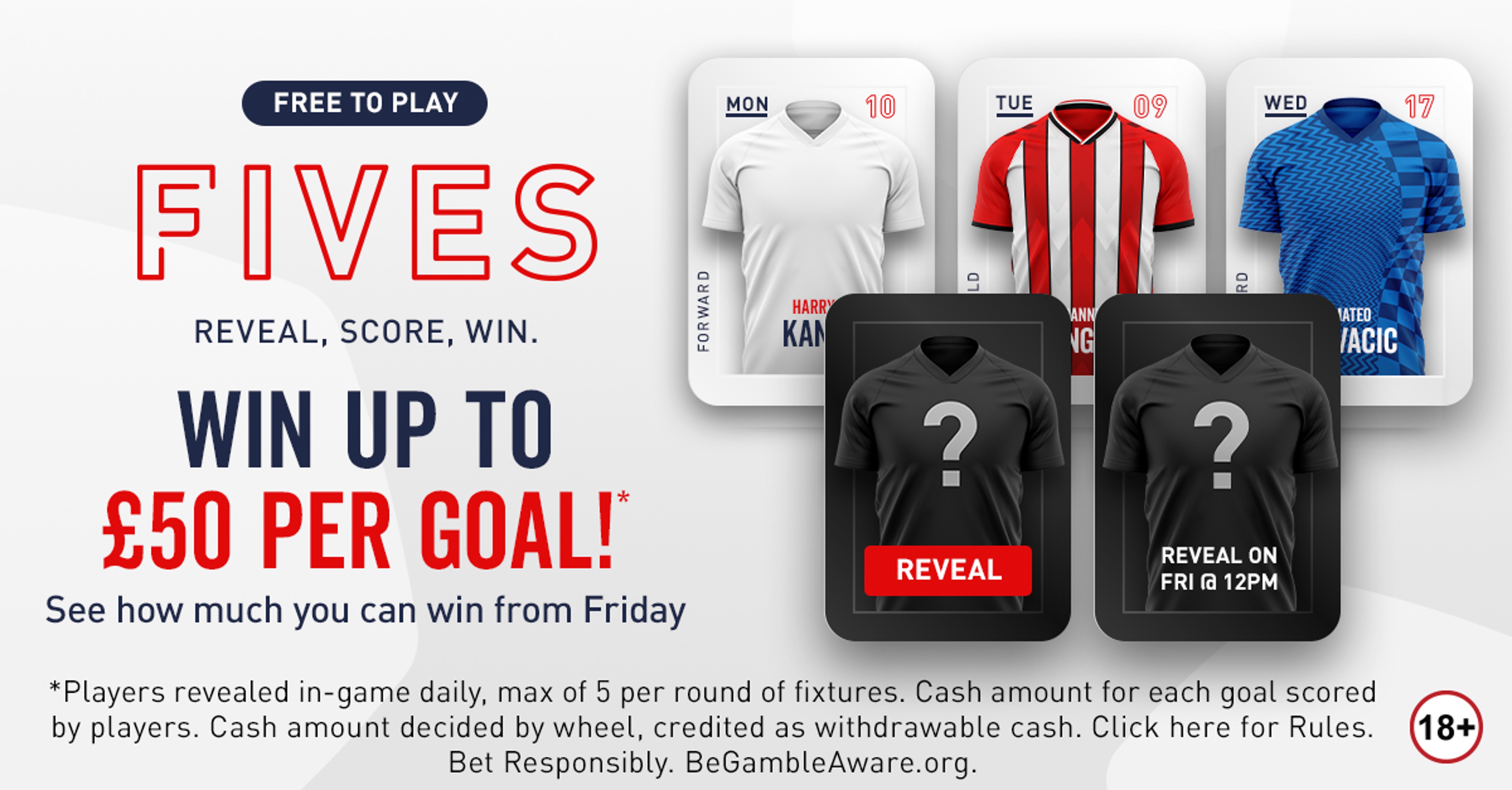 JM: Each day you log in you get given a player at random and you can have up to five players for the weekend. On the Friday you then spin a wheel, and it will land on a monetary amount. If those players score a goal, you will get that amount multiplied by the number of goals that they score.