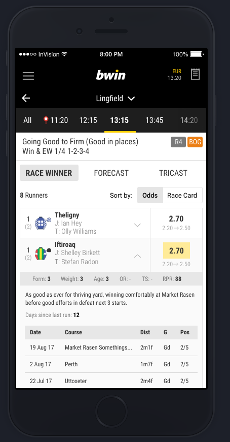 Bwin are trialling the UK mobile-only version of the product to a select 100 VIP customers to attain feedback before rolling it out to a further 100 Sportingbet customers, who are more accustomed to horseracing.