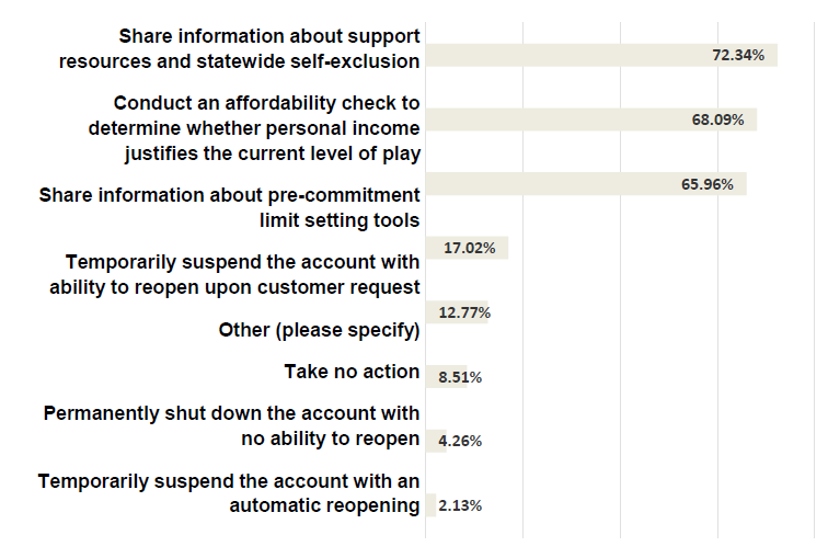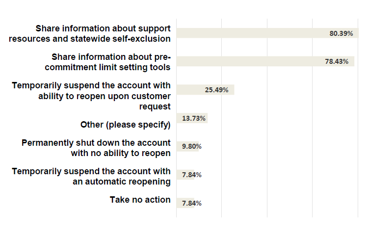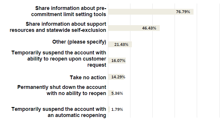 In the anonymous and voluntary survey, respondents were asked to assume the role of an online gambling operator and select situationally appropriate responses for online bettors displaying potentially problematic gambling behavior.
