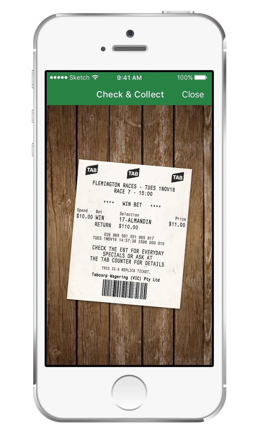 Check & Collect gives customers the opportunity to scan the barcode on their bet slips for both fixed-odds and Tote wagers using the TAB iOS and Android apps.
