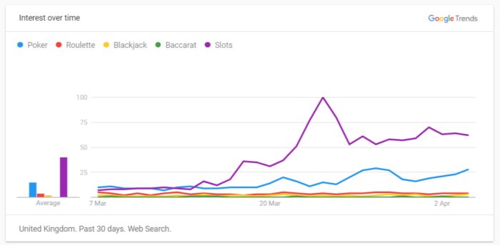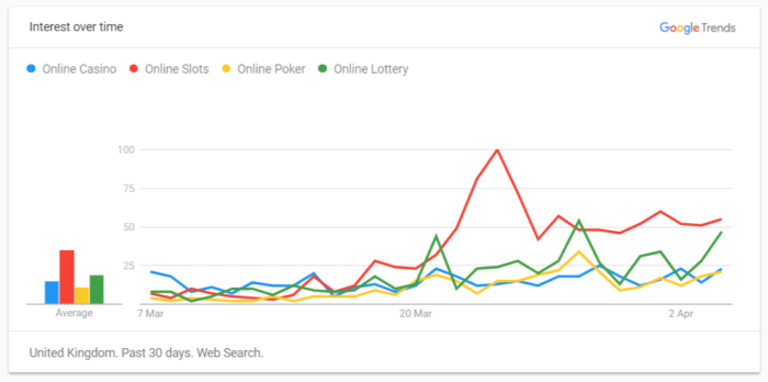 The information naturally screams to target Slots. However, a quick Google shows that this increase is purely related to ‘Online Delivery Slots’ for shopping, which piqued interest as a result of a news cycle on 24th March showing supermarket websites crashing.