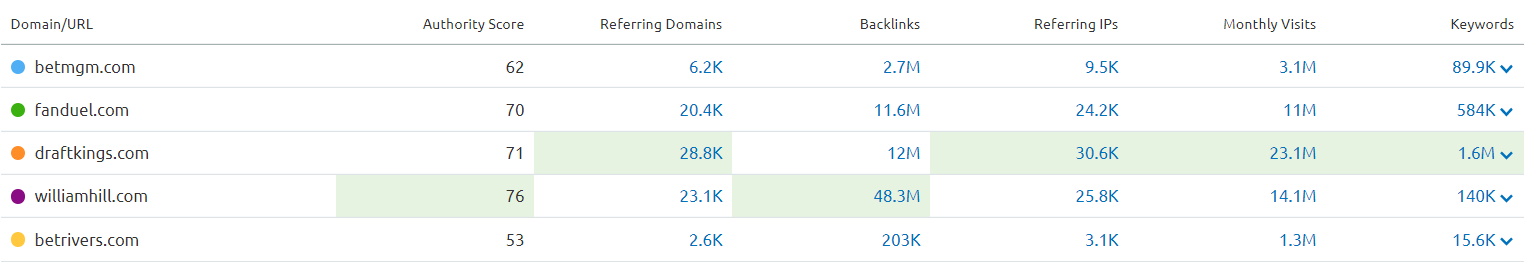 While paid acquisition, advertising, and big media pushes are par for the course in the frenzied US betting landscape, in this short article I’ll draw on some of the ICS-digital team’s snapshot analysis to consider how the ‘big five’ mentioned above compare in SEO terms.