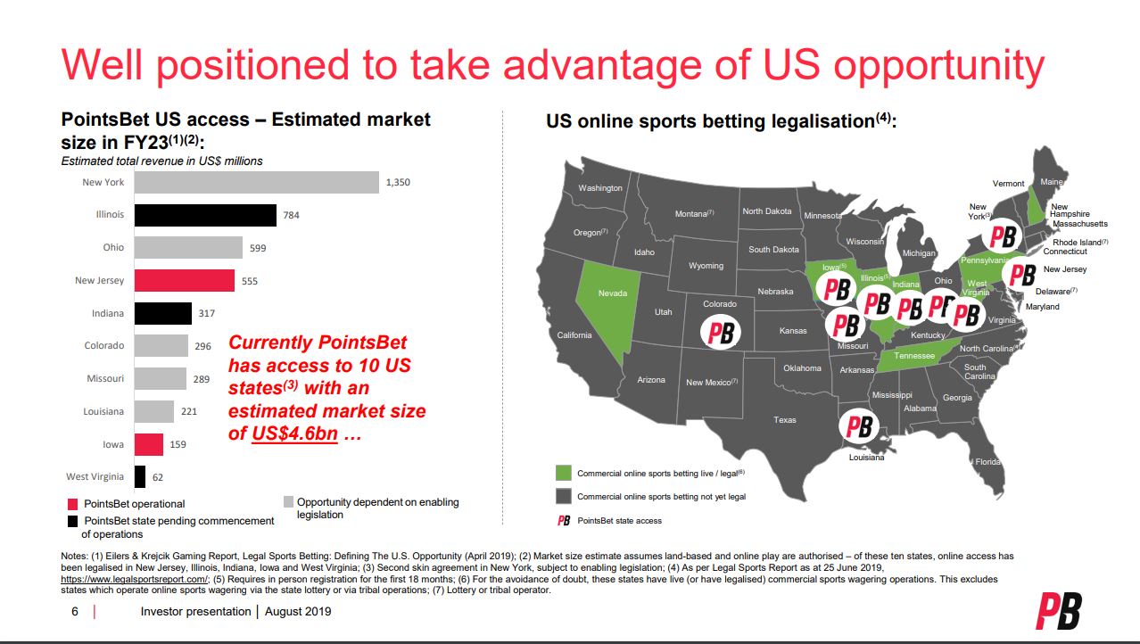 PointsBet says it is well placed to succeed in the US sports betting market. Source: PointsBet FY2019 Results presentation