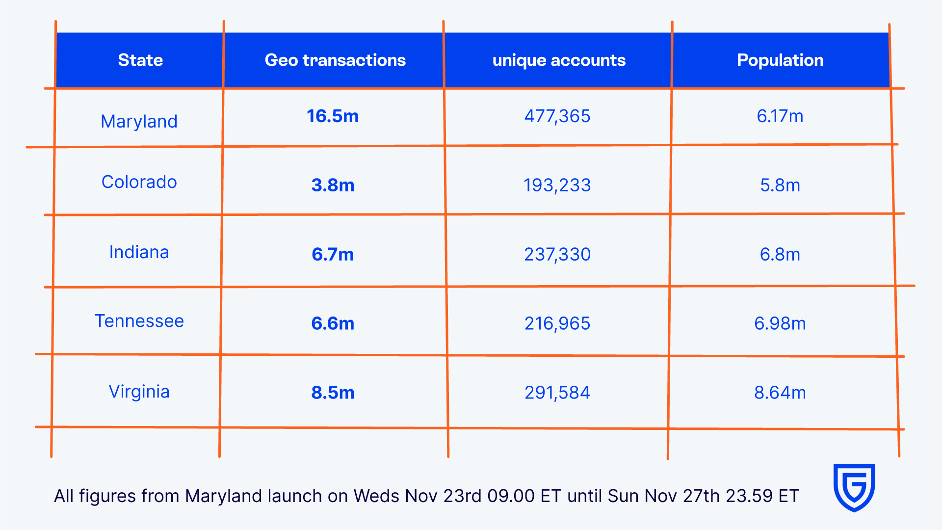 In respect of geolocated transactions, numbers far surpassed those of Indiana and Tennessee and were close to the 17.1 million reported in New Jersey, which has a substantially higher population than Maryland.